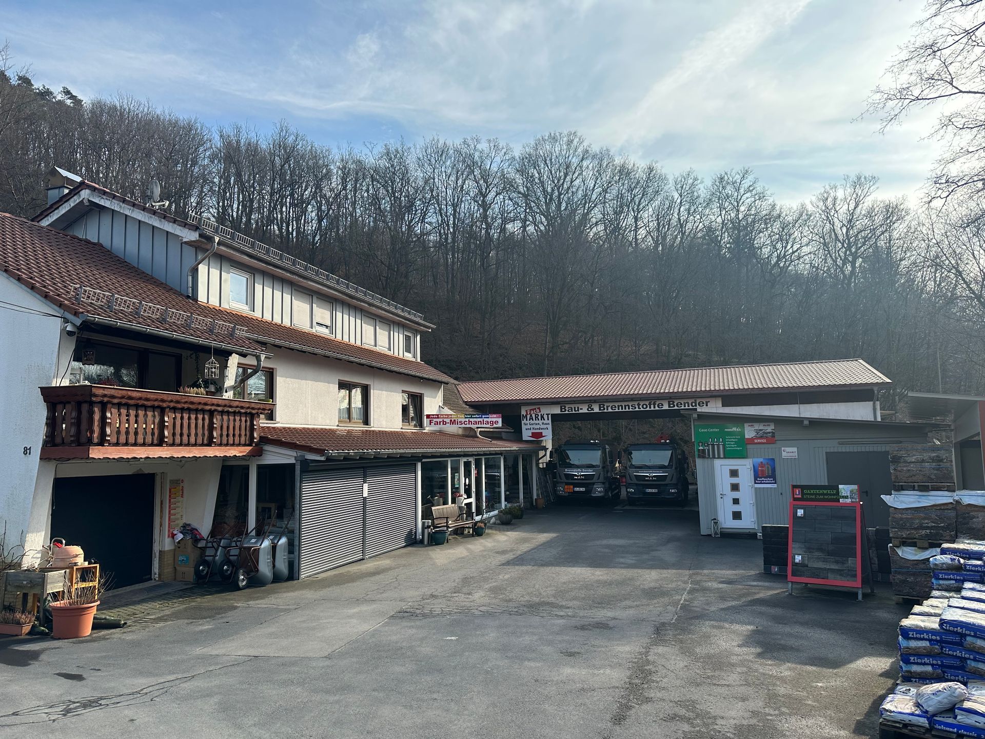 Unser Familienunternehmen wurde in den 1940er-Jahren von Wilhelm Bender gegründet und begann mit der Herstellung von Dachziegeln. Seitdem haben wir unser Sortiment stetig erweitert und an die Anforderungen der Zeit angepasst. Heute bieten wir auf einer Fläche von über 1.000 m² eine vielfältige Auswahl an Baustoffen und Brennstoffen – ideal für Profis und Hobbyhandwerker.